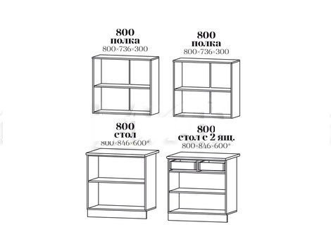 Высота верхних шкафов (мм) 736